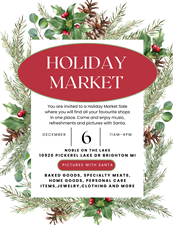 Holiday Shopping Vendor Market and Open House at Noble on the Lake - come shop unique gifts, enter to win prizes, tour the community - Holiday pictures with Santa !