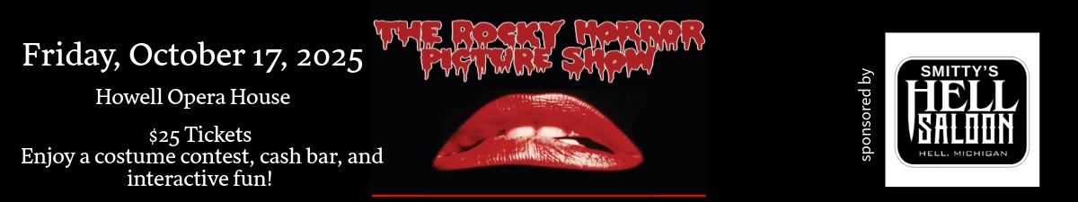 Join us Friday, October 17 from 8–11 PM for this 70s cult classic on the big screen right here in the Historic Howell Opera House! Dressing up as your favorite character is encouraged (there’s even a costume contest!), and we’ll have a cash bar and light concessions available.