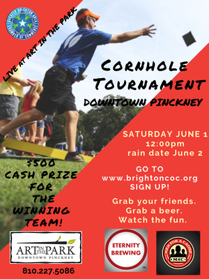 Join Men 4 A Cause for another fun Cornhole Tournament! This event will take place during this year's Art in the Park in Downtown Pinckney. The winner will take home up to $500!